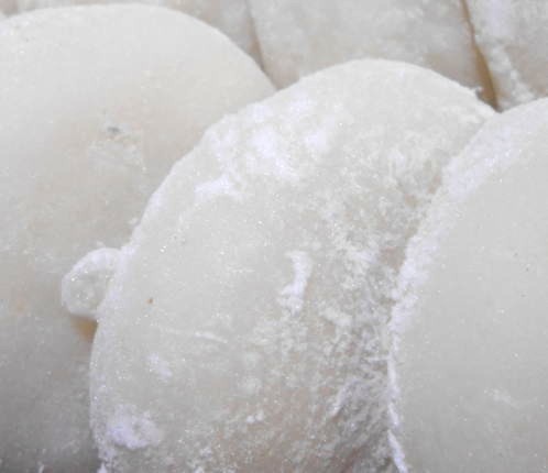 Mochi applied with Katakuri Ko powder to avoid sticking.