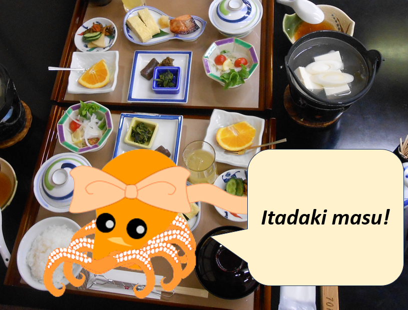 いただきます Traducción aproximada: “¡Me alegra comerlo!”.