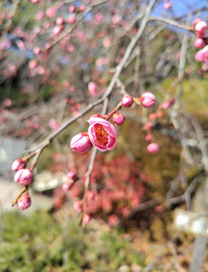 節分も終わり、暦(こよみ)のうえではもう春なのですが、まだまだ寒い日が続きます。しかし、その暦に忠実なのが梅の花。こんなに寒いのにもうつぼみが開いている花もあるのです。元気というか、いさぎよいというか、人間なぞ北風にちぢこまっているのに、なかなか立派です。「咲くときは咲くんだ」という凛々しさを感じますね。やはり、自然というものはたくましさがあります。人間もひとつ見習って、ここぞというときには、「やるときはやる」といった覚悟で飛びこんでいきたいものです。人生、一度や二度そういうときもありますよね。そして、それは「いま」なのかもしれません。というわけで、いざ、寒風のなかへ――。